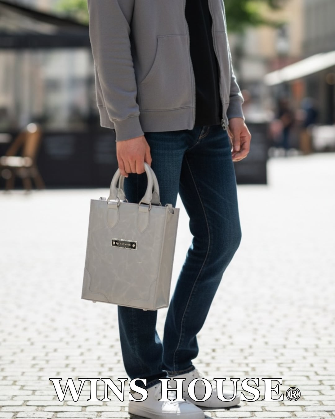 WINS HOUSE®︎【ウインズハウス】 Italian Leather Hand Bag Shoulder【牛革】【イタリアンレザー】グレー