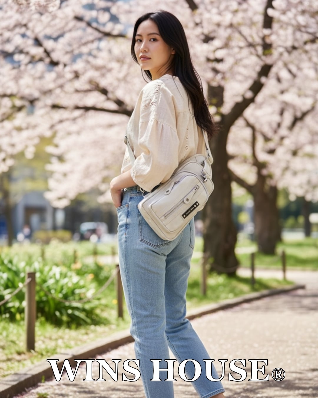 WINS HOUSE®︎【ウインズハウス】 イタリアンレザー ボディーバッグ 【グレー】BodyBag 本革【牛革】kame gray