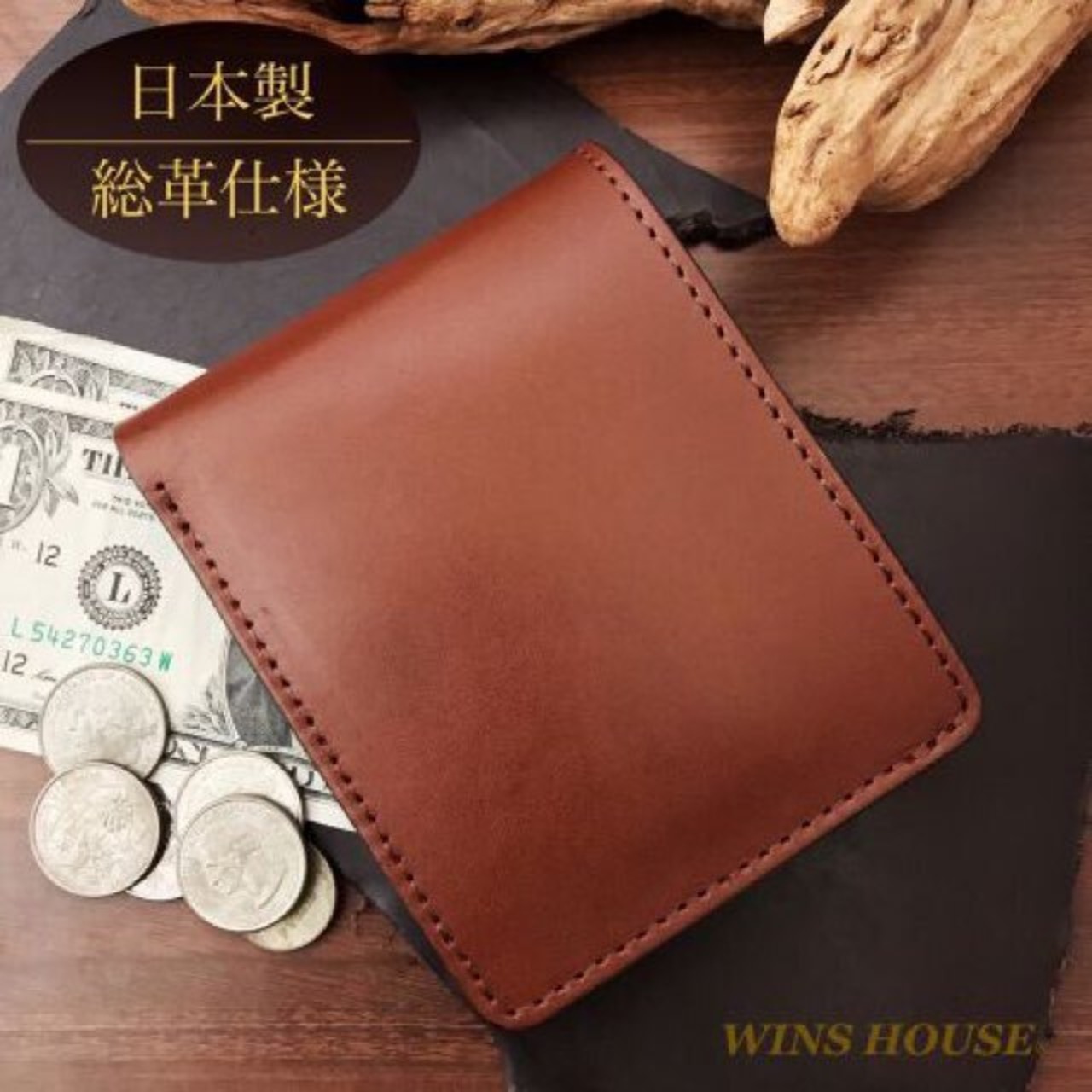 WINS HOUSE®︎【ウインズハウス】 オイルレザー ショート 二つ折り ウォレット【二つ折り 財布】 本革【牛革】 日本製