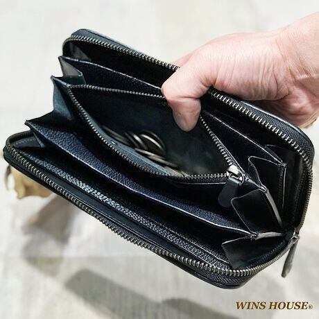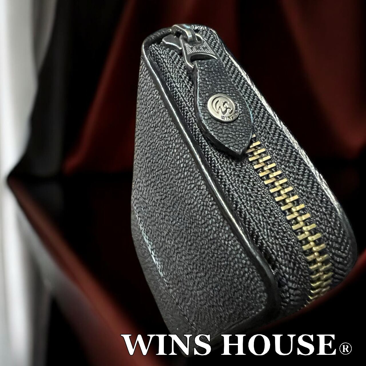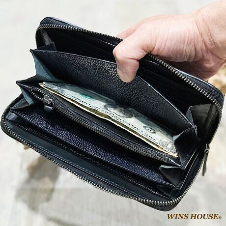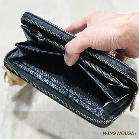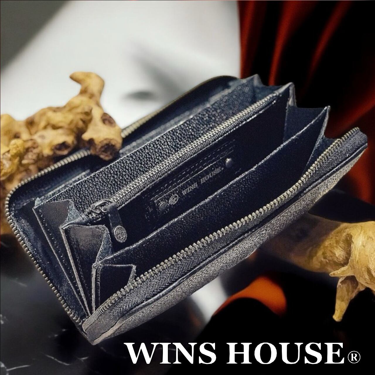WINS HOUSE®︎【ウインズハウス】 スティングレイ エイ革 ラウンドファスナー ウォレット ブラック【長財布】 本革【エイ革 牛革】