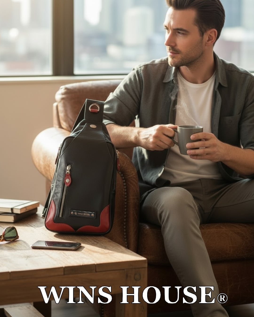 WINS HOUSE®︎【ウインズハウス】 イタリアンレザー ボディーバッグ BodyBag 本革【牛革】ブラック/ネイビー