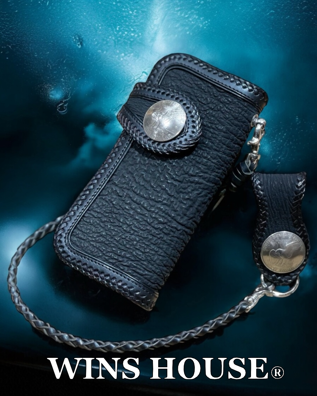 WINS HOUSE®︎【ウインズハウス】 シャーク ウォレット USA 1$ ロング 【長財布】( ウォレット レザー チェーン セット) インナーシャークレザータイプ本革 鮫革 牛革