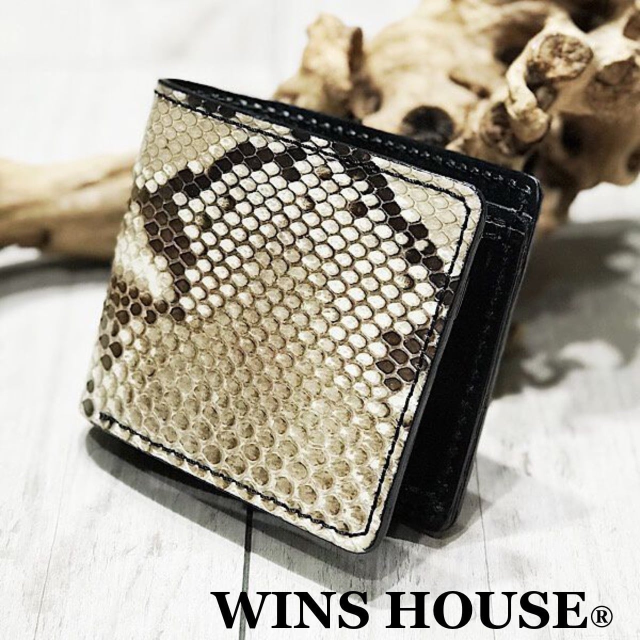 WINS HOUSE®︎【ウインズハウス】 ダイヤモンドパイソン ショート ウォレット【二つ折り 財布】 本革【蛇革 牛革】 日本製