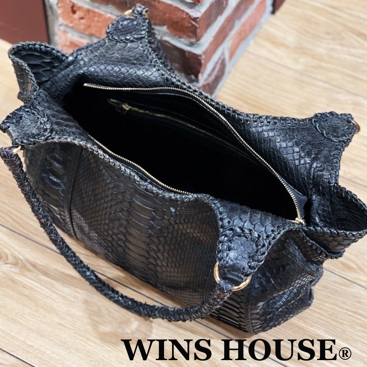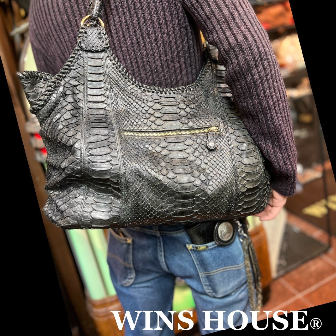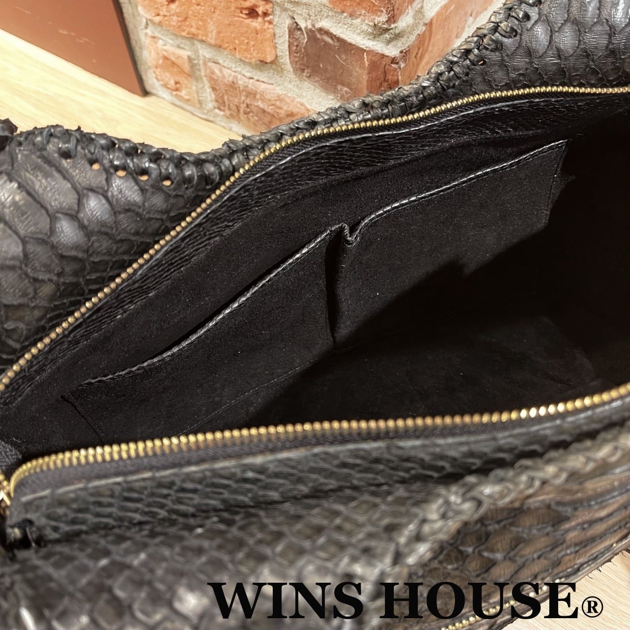 WINS HOUSE®︎【ウインズハウス】 ダイヤモンド パイソン ブラック バッグ CASUAL BAG 本革【蛇革 牛革】ブラック