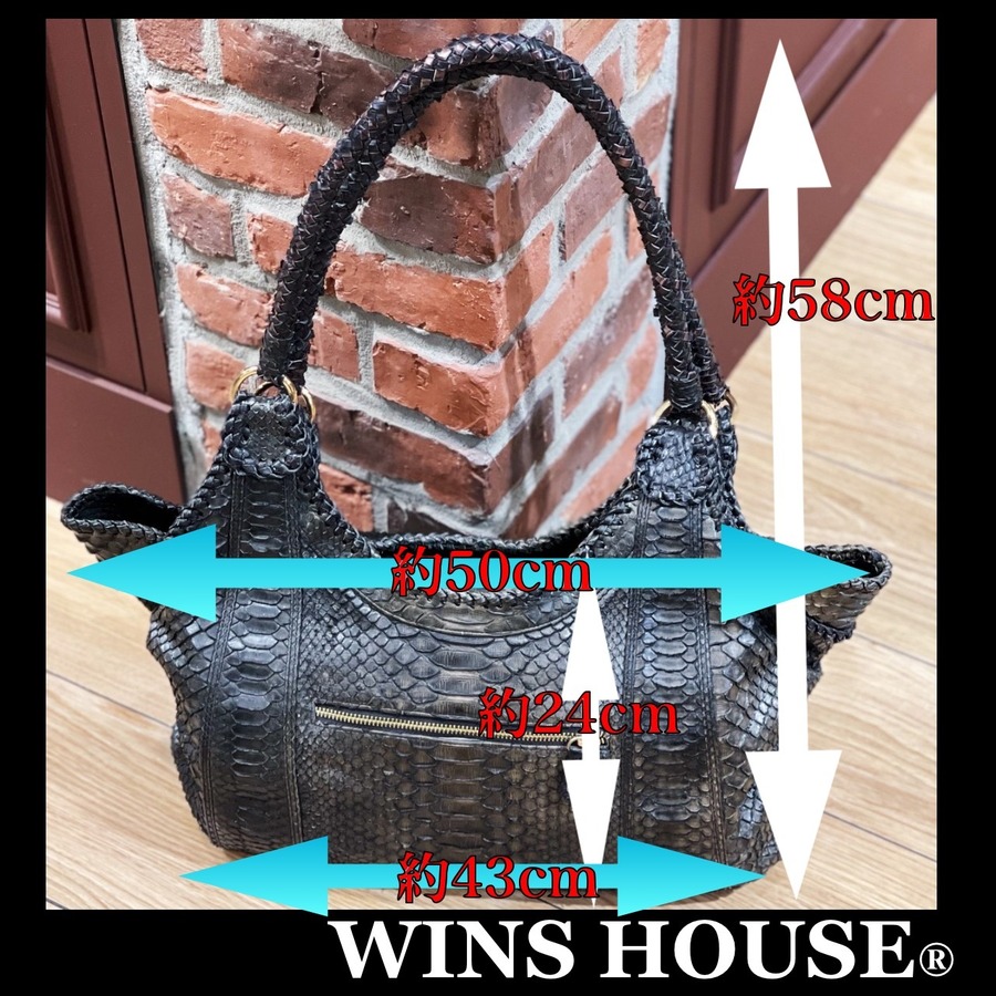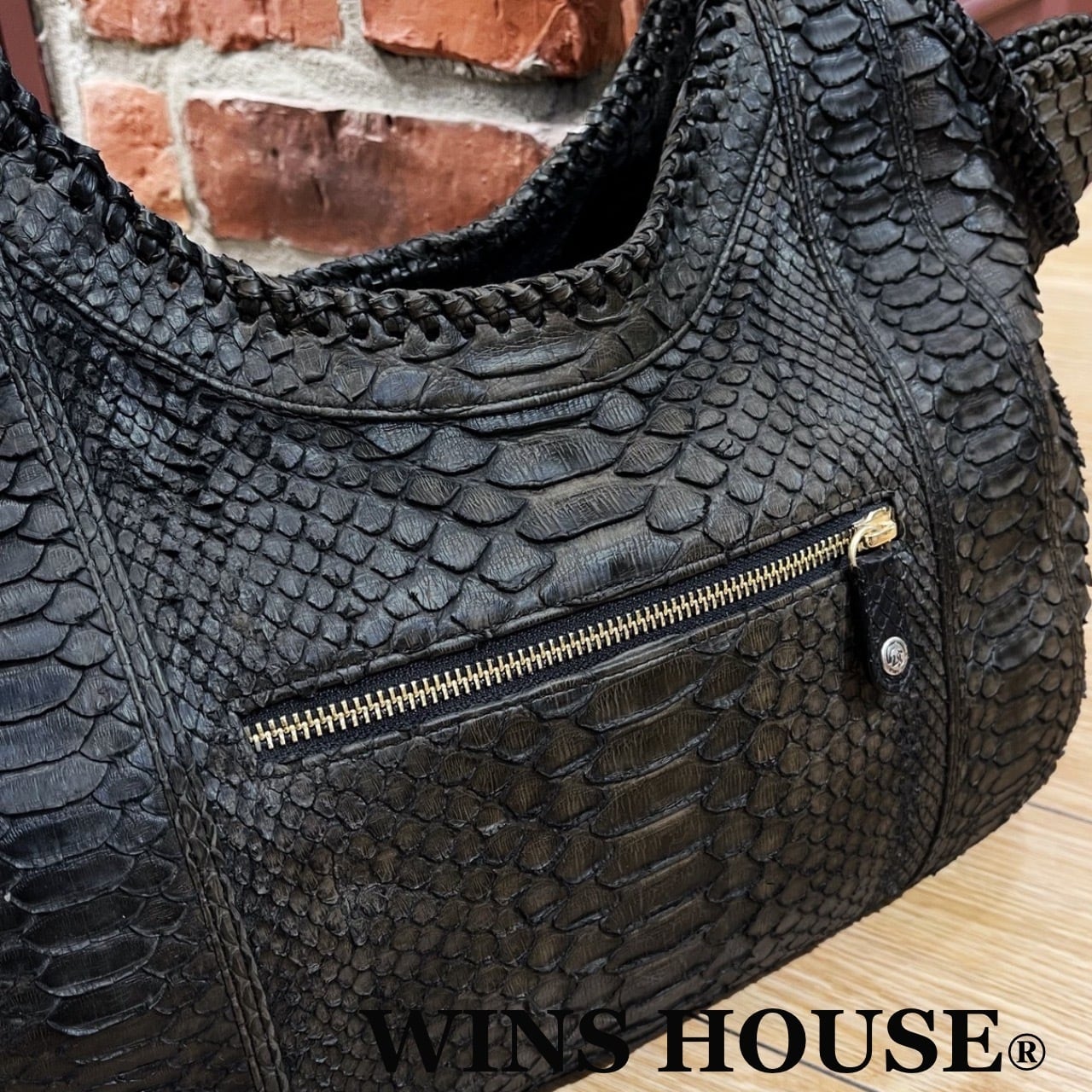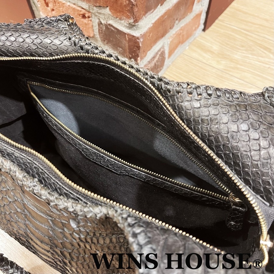 WINS HOUSE®︎【ウインズハウス】 ダイヤモンド パイソン ブラック バッグ CASUAL BAG 本革【蛇革 牛革】ブラック