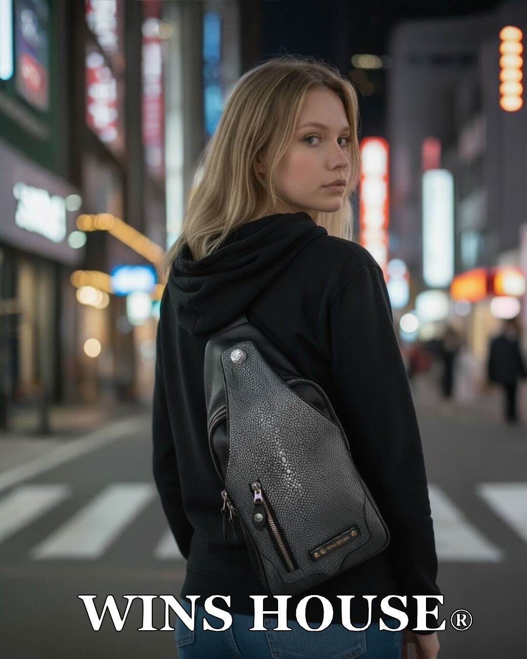 WINS HOUSE®︎【ウインズハウス】 スティングレー イタリアンレザー ボディーバッグ BodyBag WS 本革【牛革】ブラック
