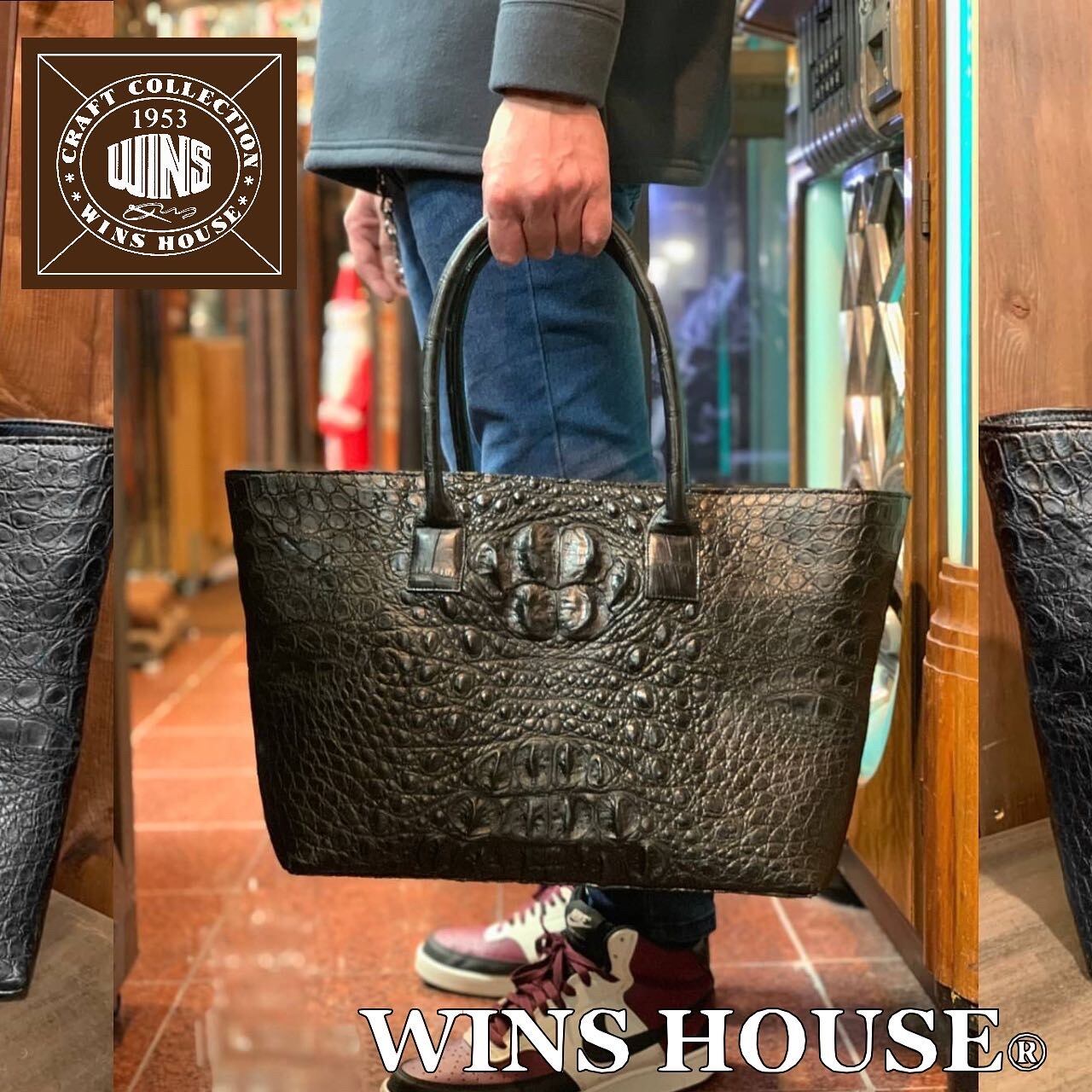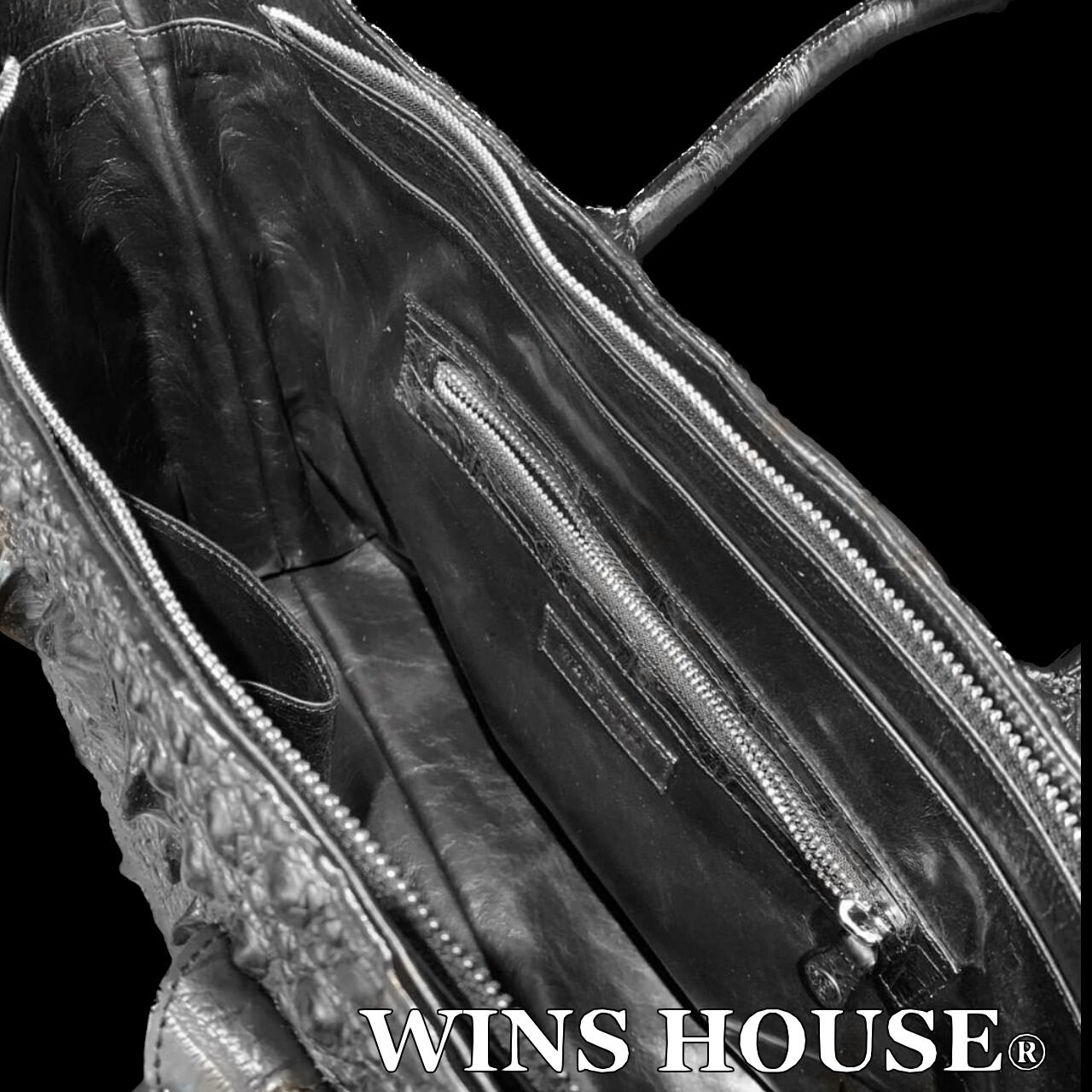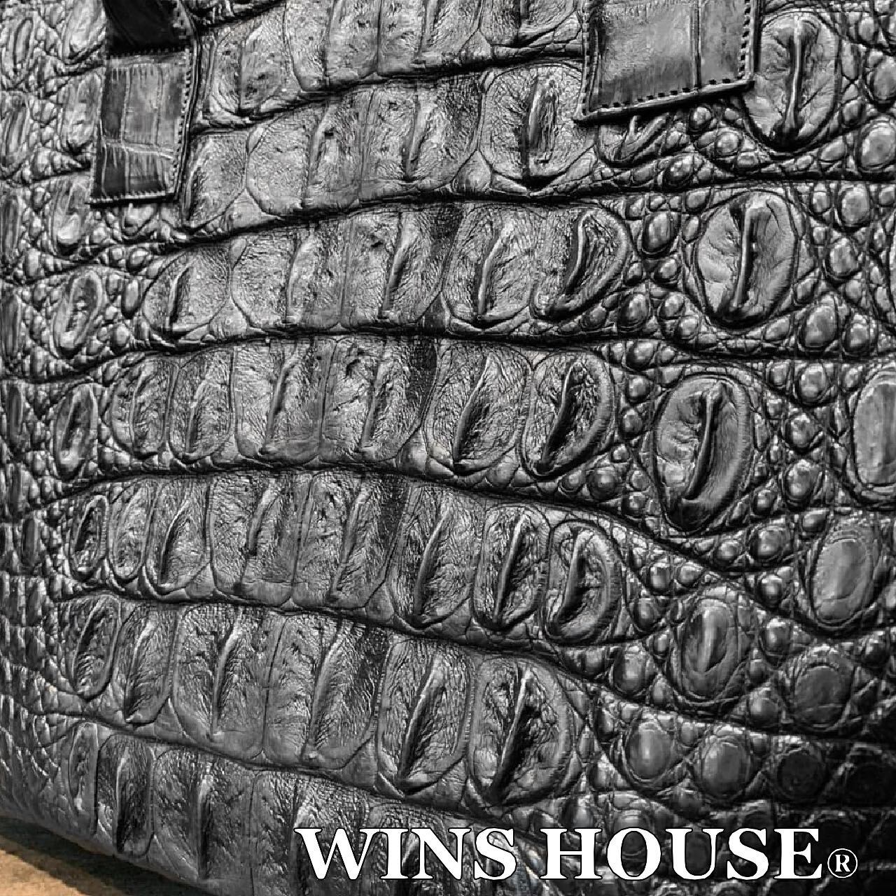 WINS HOUSE®︎【ウインズハウス】 クロコダイル クラウン ブラック バッグ CASUAL BAG本革【 鰐革 牛革 】CROCODILE SIAMENSIS
