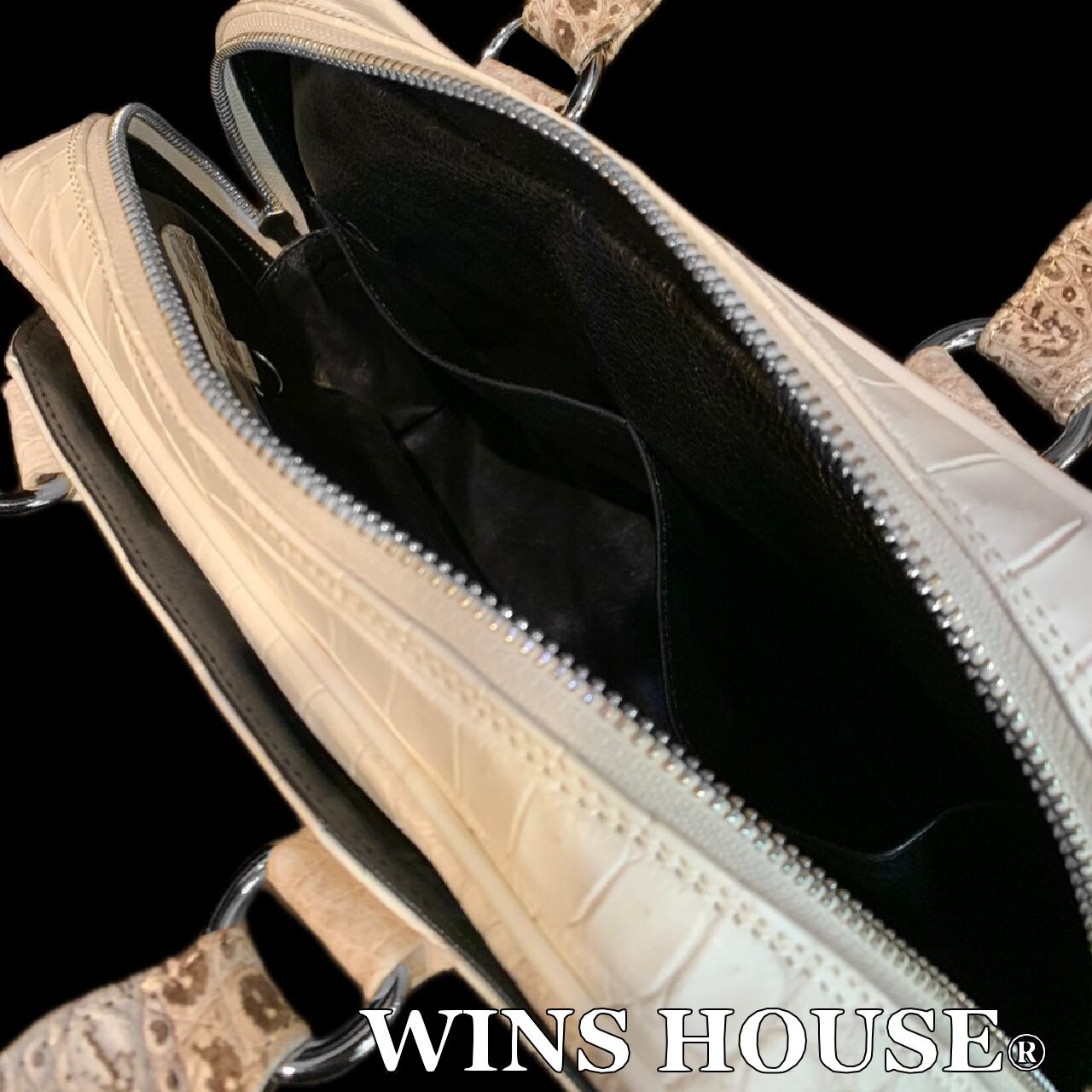 WINS HOUSE®︎【ウインズハウス】 ヒマラヤクロコダイル バッグ HAND BAG本革【 鰐革 牛革 】 CROCODILE SIAMENSIS