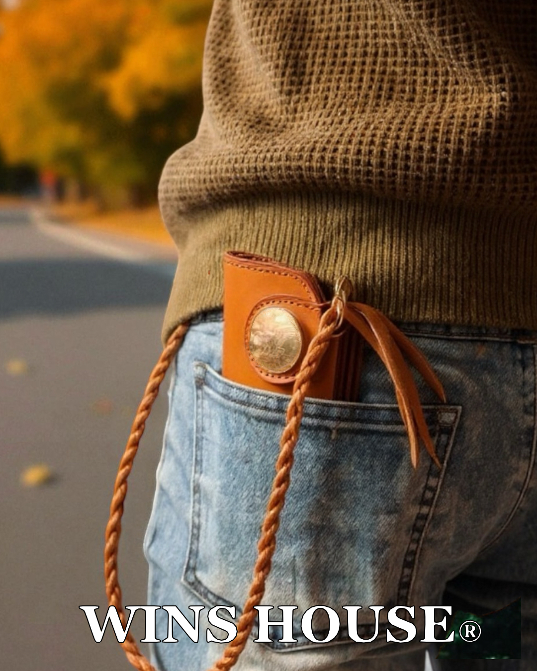 また、パンツのバックポケットから覗かせた時の存在感が抜群で、アメカジファッションやバイカーズスタイルには最高の相性となります。