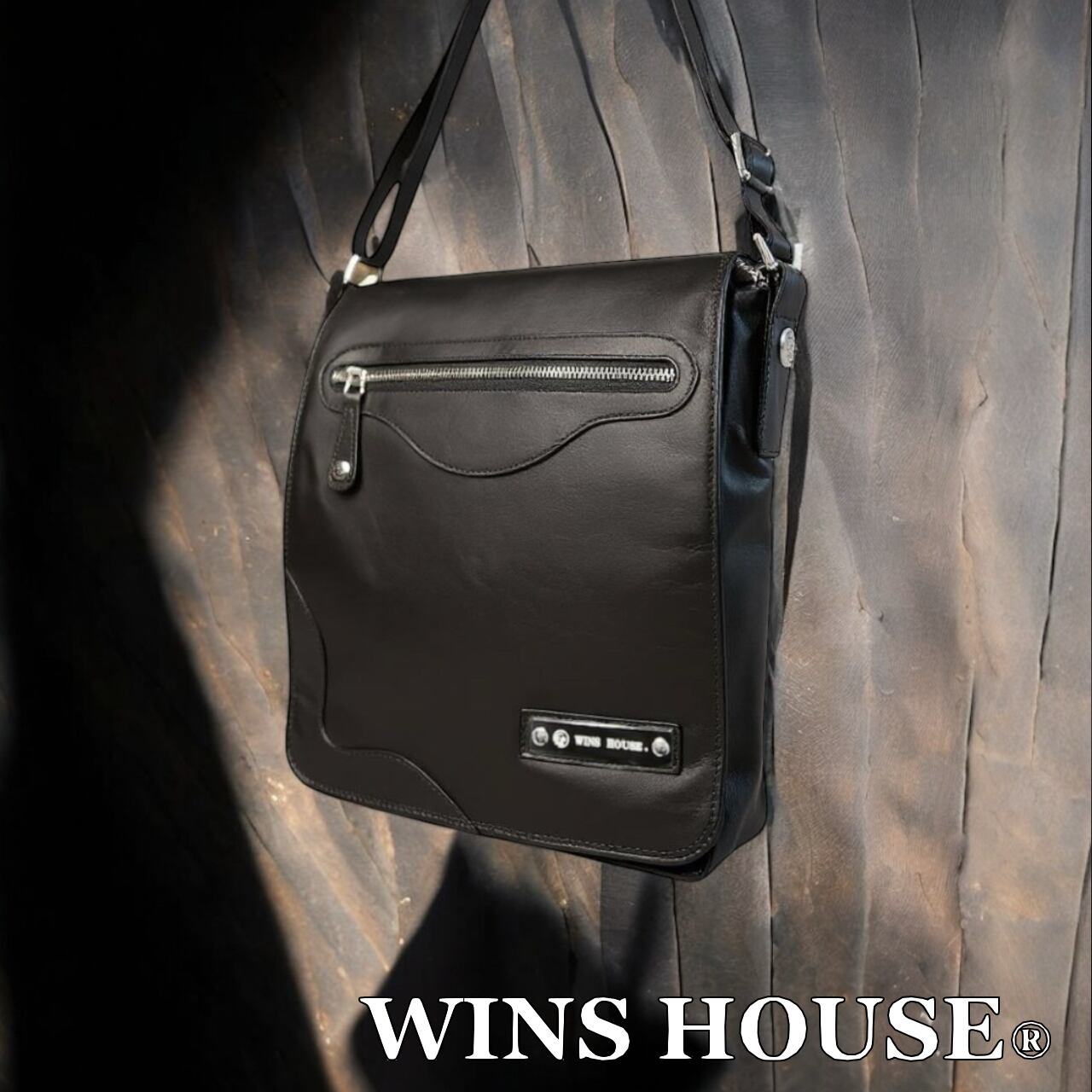 WINS HOUSE®︎【ウインズハウス】 SHOULDER BAG 本革【牛革】イタリアンレザー ブラック